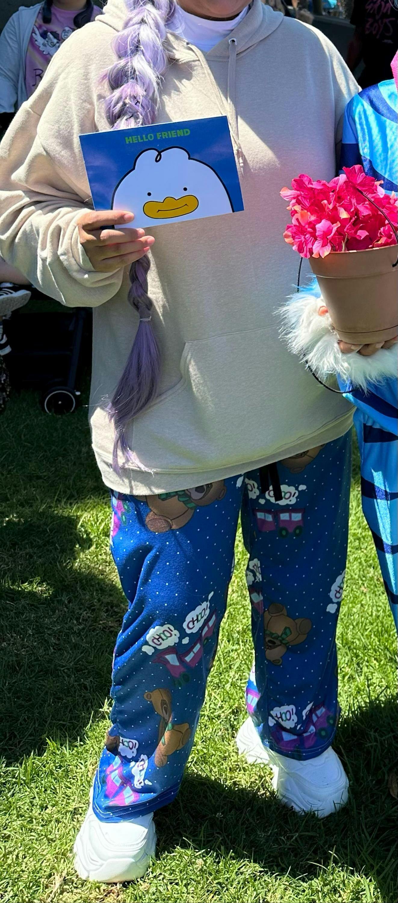 Battle any foe...or any demon...in comfort and style, just like Rumi in K-Pop: Demon Hunters. These Choo Choo Pajama Pants re-create her now-iconic sleepy-time look, but also hilariously iconic scene, haha! Perfect for bedtime, lounging around, or just going upon your day!